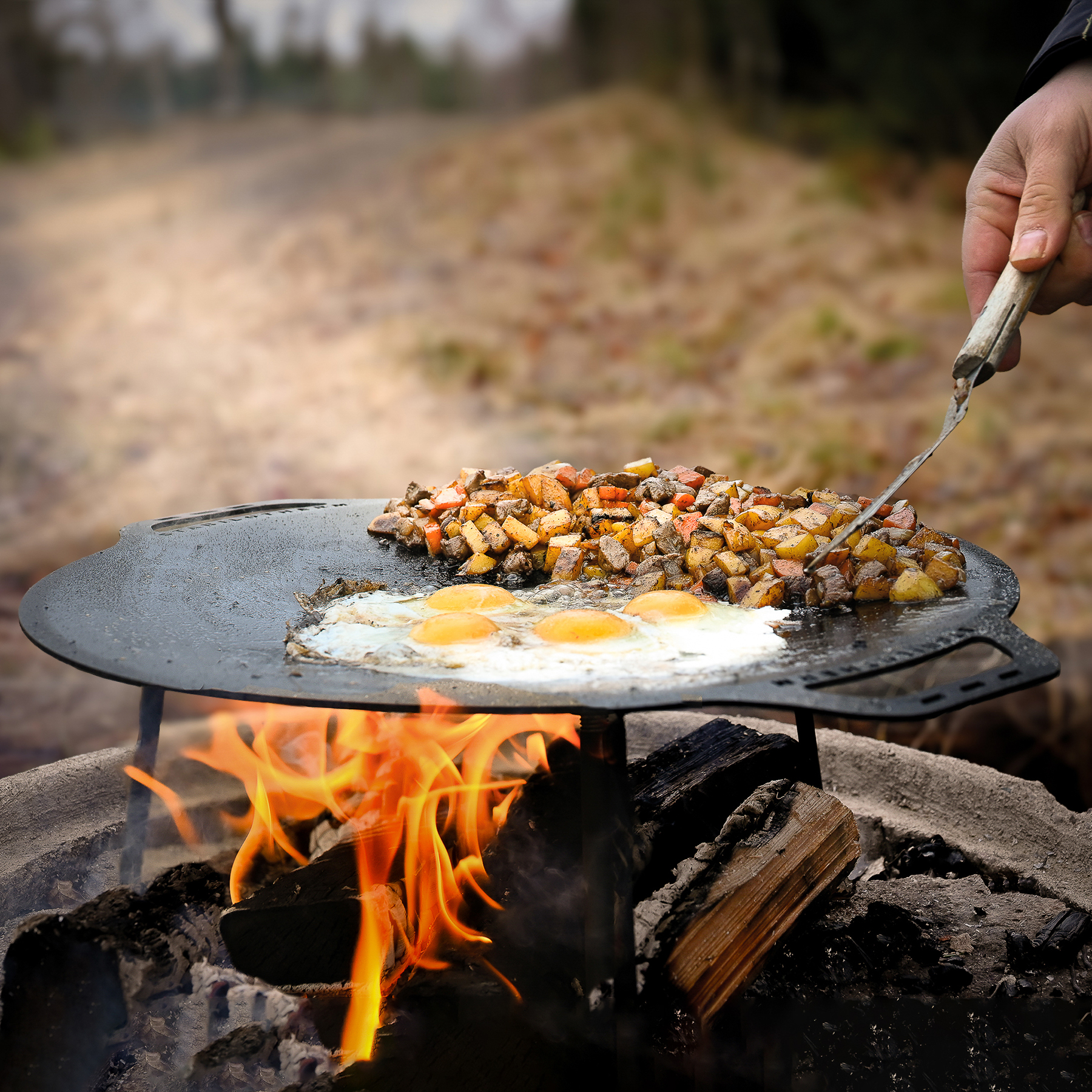 Hetta upp rikligt med smör i stekhällen och stek den råa potatisen och moroten så att de börjar mjukna. Rör om med en stekspade så de inte bränns.